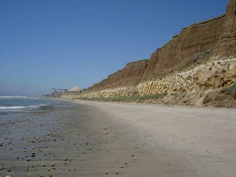 tan formation at the base of the cliff is the San Mateo Formation. It is a
