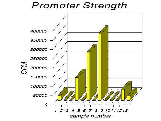 CAT (chloramphenicol acetyl transferase) activity of several different promoters