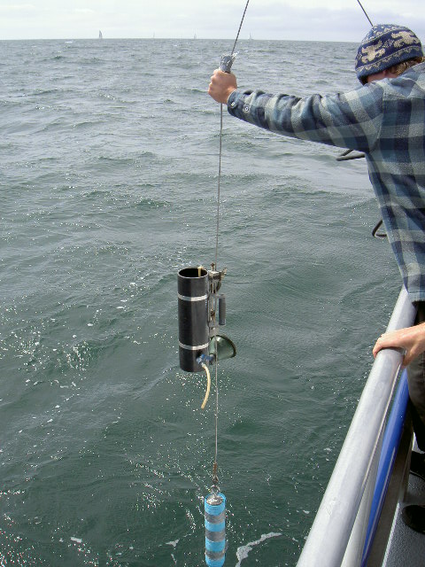 These measurements define the strength of the thermocline present. This is a key factor in determining the potential productivity in an area. When a weak thermocline (cold deep and cool on top) is present as we have here in the winter it is easy to get upwelling of cold nutrient rich water into the photic zone. However, when we have a strong thermocline (cold on bottom and warm/very buoyant on top) as in the summer or in an El Nino year it is very difficult for the cold nutrient rich water to penetrate the warm buoyant surface water.